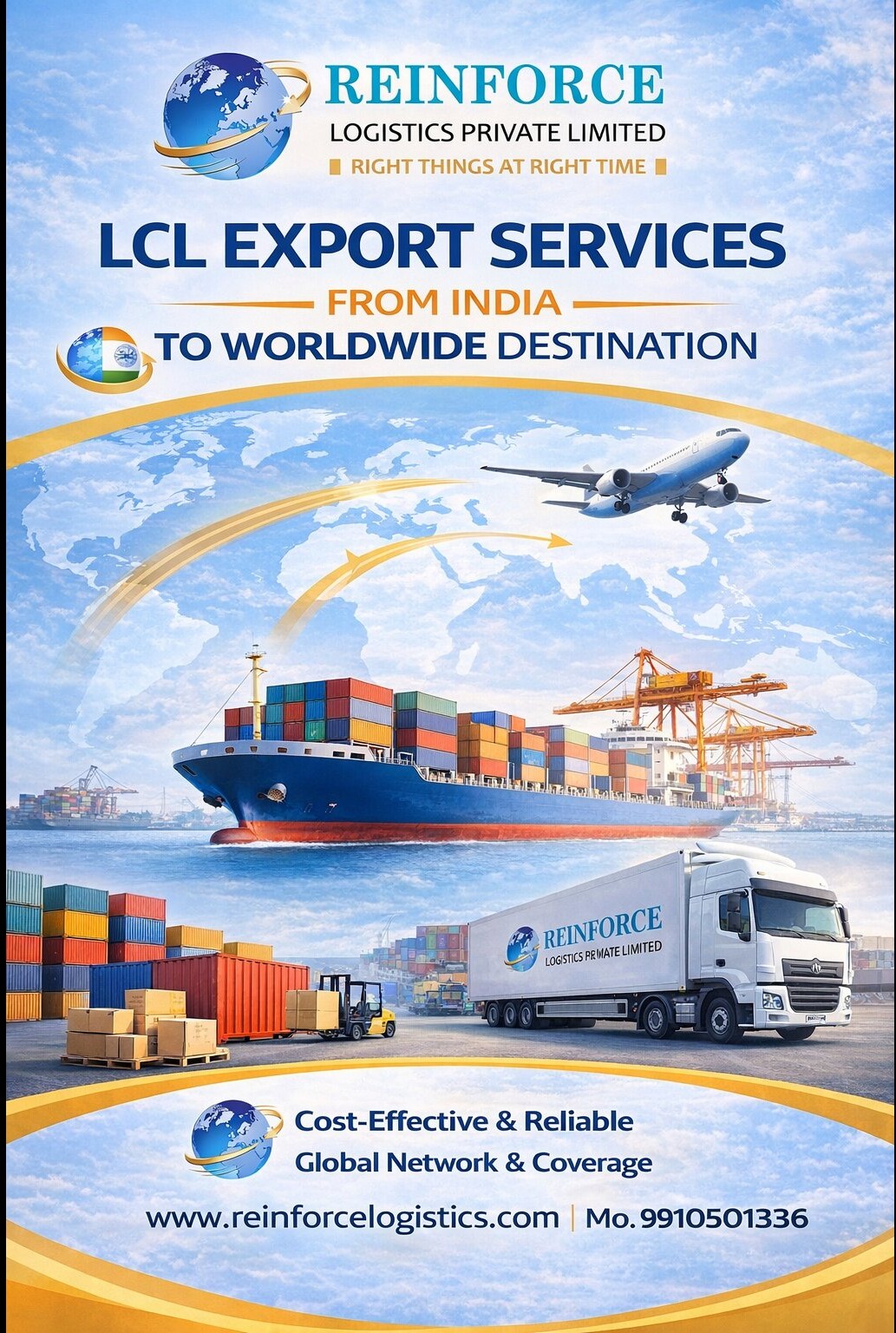 Reinforce Logistics Pvt. Ltd. offers reliable and cost-effective Less than Container Load (LCL) Export Services from India to worldwide destinations, designed especially for businesses that do not require a full container. Our LCL solutions allow multiple shipments from different exporters to be consolidated into a single container, helping you save significantly on freight costs while ensuring safe and timely delivery. With a strong global network and partnerships with leading shipping lines and international agents, we provide seamless cargo movement from major Indian ports such as Nhava Sheva, Mundra, Chennai, and Kolkata to key global trade hubs across Asia, Europe, the Middle East, Africa, and the Americas. Our end-to-end LCL export services include: Cargo consolidation and deconsolidation Door-to-port and door-to-door delivery options Efficient documentation and customs clearance support Warehousing and cargo handling facilities Real-time tracking and shipment updates Professional packing and labeling solutions At Reinforce Logistics Pvt. Ltd., we understand that every shipment is important, regardless of size. Our experienced team ensures that your cargo is handled with utmost care, properly consolidated, and delivered securely within committed timelines. We focus on transparency, competitive pricing, and personalized service to meet your unique logistics requirements. Whether you are a small exporter or a growing enterprise, our LCL export services provide the flexibility, reliability, and global reach needed to expand your business across international markets. Reinforce Logistics Pvt. Ltd. – Your Trusted Partner for Global LCL Export Solutions.